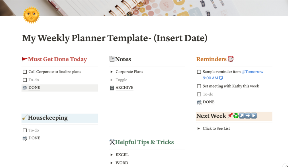 My Notion Weekly Planner