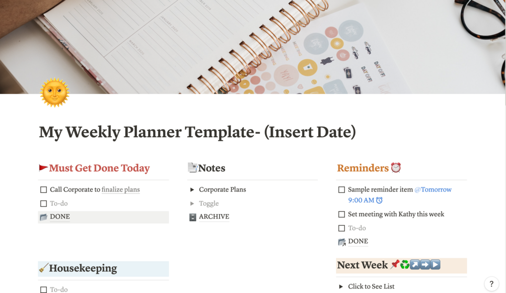 You'll get My Weekly Planner template with embedded pages along with Word and Excel Sample Tips.